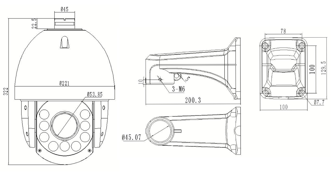 ជួរ / Tilt ជួរ | PAN: 360 អង្សារ; លំអៀង: - 10 អង្សា - 90 ° |